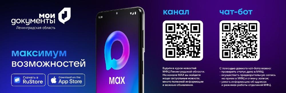 Кроме того, на официальном новостном канале МФЦ Ленинградской области в мессенджере МАХ регулярно публикуется актуальная информация для населения - жителей региона приглашают подписаться на канал по ссылке и первыми узнавать главные новости центров госуслуг.