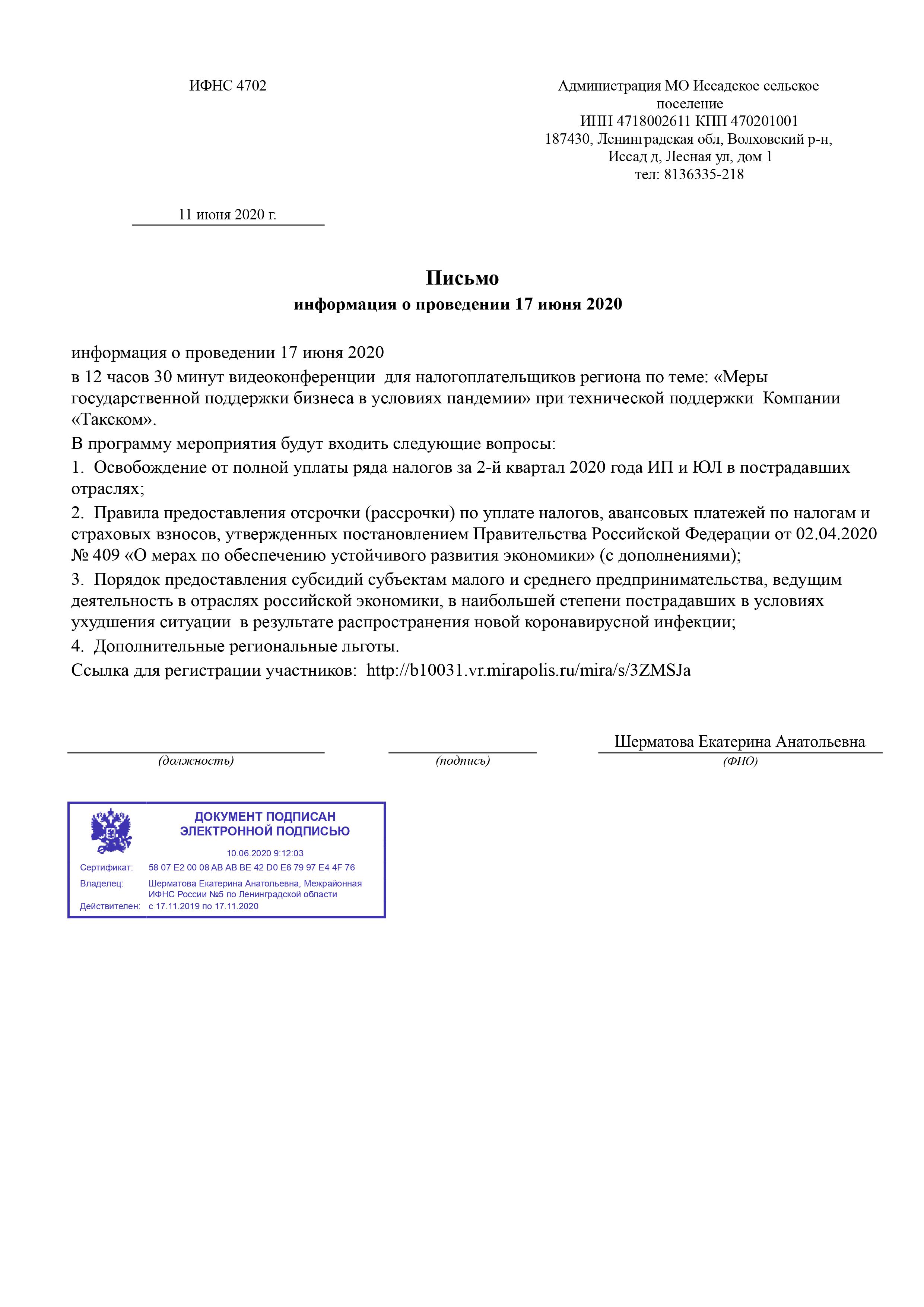 Информация о ВКС по поддержке МСП